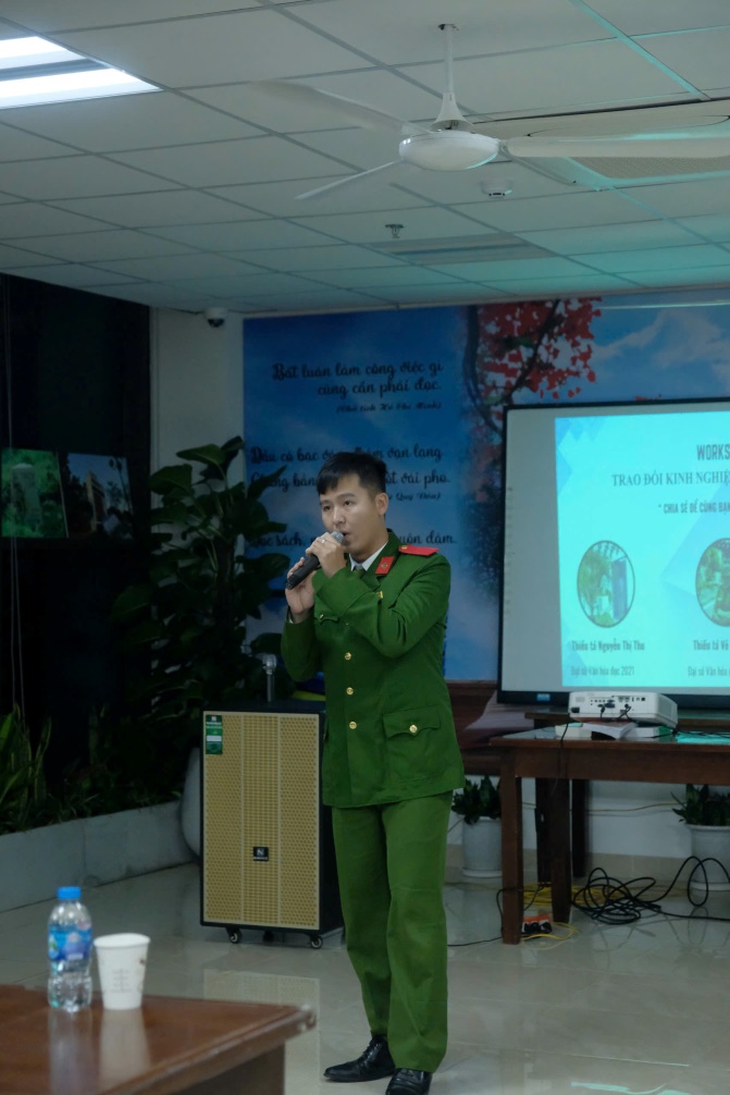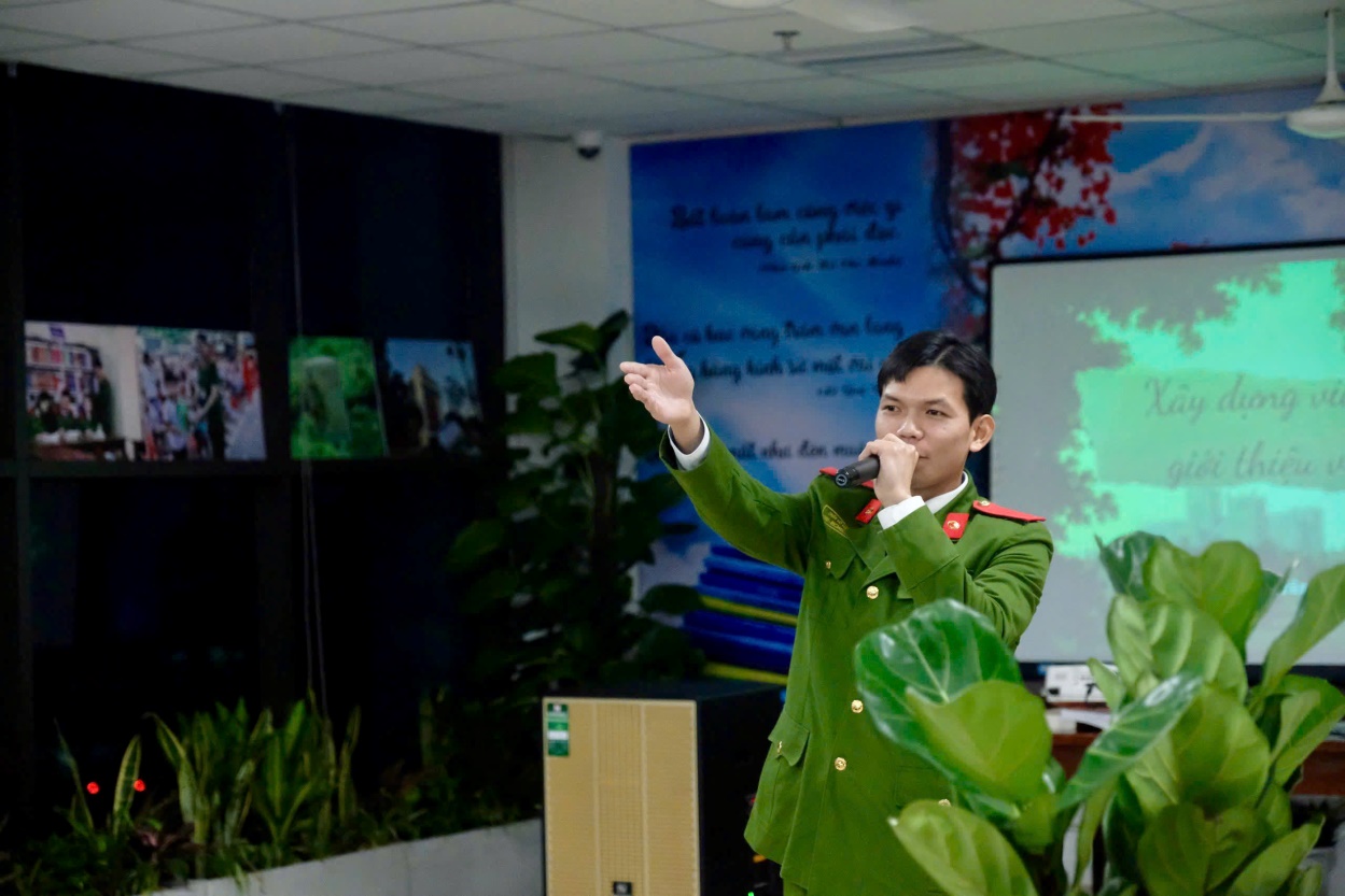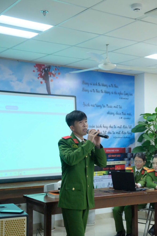 Đồng chí Thiếu tá Võ Hữu Vũ, Đại sứ Văn hoá đọc cấp Bộ năm 2025, chia sẻ kinh nghiệm viết bài giới thiệu sách hấp dẫn.