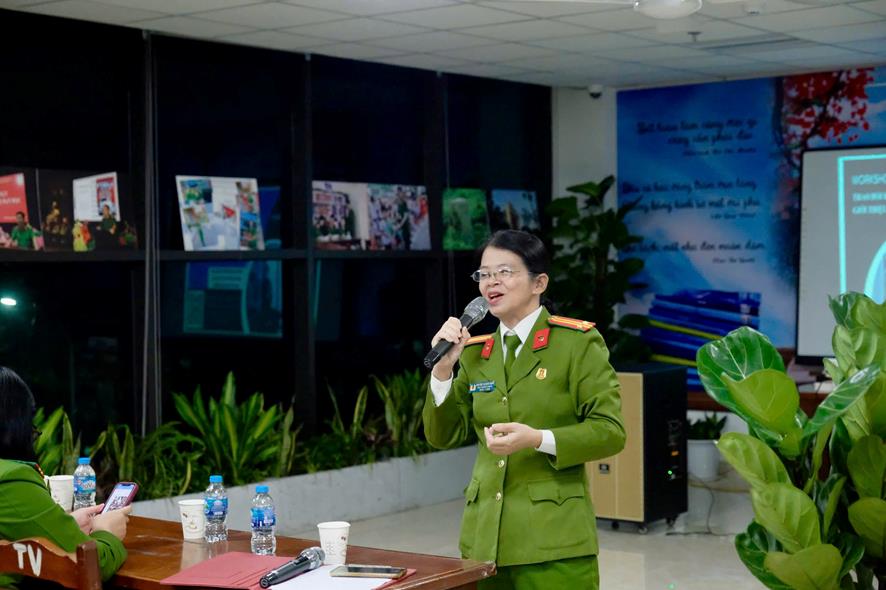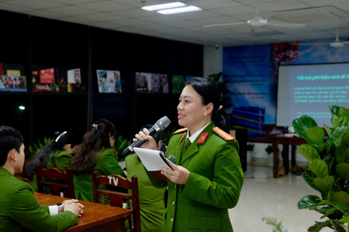Đồng chí Thiếu tá Nguyễn Thị Thu, Đại sứ Văn hoá đọc cấp Bộ năm 2021 hướng dẫn các bước viết bài giới thiệu sách.