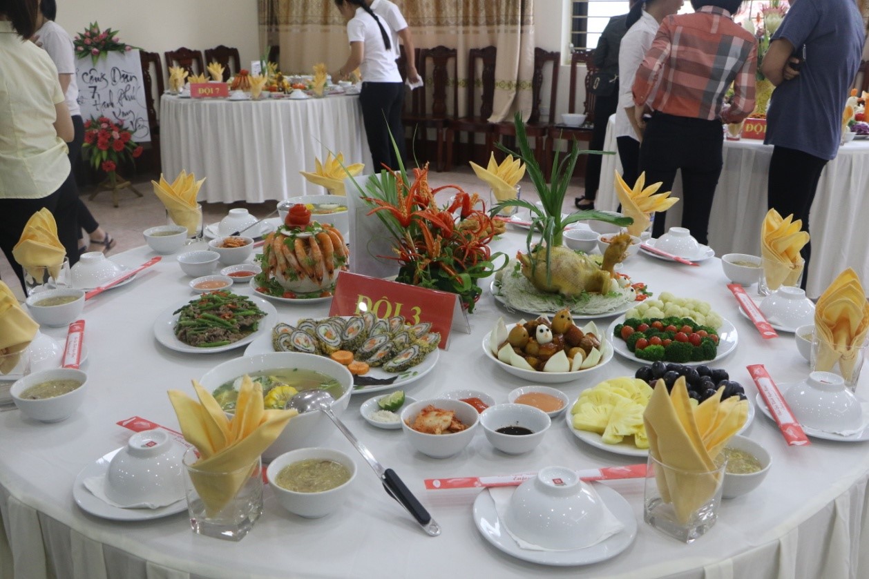 Hội thi đã diễn ra sôi nổi, hào hứng với hai phần: thi cắm hoa nghệ thuật và nấu ăn giỏi. Phần thi cắm hoa nghệ thuật được thực hiện trong 60, các đội tuyển đã chuẩn bị chu đáo từ lựa chọn nguyên liệu lạ mắt như mây tre, lọ sứ, giỏ mây... Từ những bàn tay khéo léo đã thổi cho những bông hoa, cành lá, đã trở thành những tác phẩm rực rỡ, đầy mầu sắc, mang tính nghệ thuật với ý tưởng độc đáo mới lạ. Phần thi nấu ăn được diễn ra trong 150’, với cảm hứng từ ẩm thực 3 miền, các đầu bếp đã thực hiện những món ăn vô cùng đẹp mắt, ngon miệng và đảm bảo vệ sinh an toàn thực phẩm.