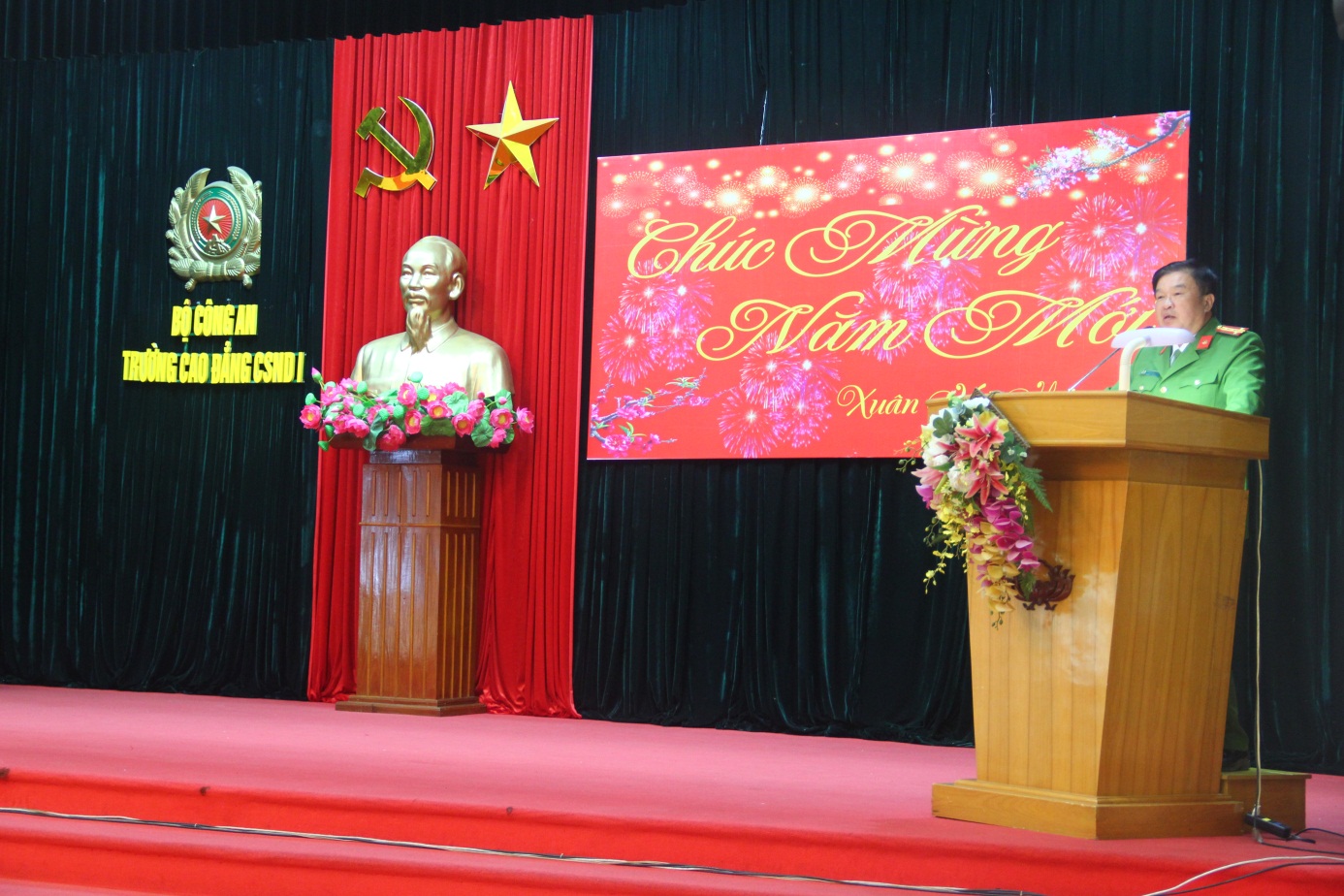 Trong không khí đầm ấm và phấn khởi, đồng chí Đại tá, TS, NGƯT Bùi Quang Vũ, Bí thư Đảng ủy, Hiệu trưởng thay mặt Đảng ủy, Ban Giám hiệu gửi thông điệp đầu xuân mới cùng những lời chúc tốt đẹp nhất đến toàn thể cán bộ, giảng viên, công nhân viên Nhà trường; đồng thời biểu dương, đánh giá cao sự nỗ lực phấn đấu, những thành tích mà tập thể cán bộ, viên chức Nhà trường đã đạt được trong năm vừa qua. Đồng chí cũng thông tin nhanh đến toàn thể cán bộ, chiến sĩ Nhà trường về tình hình an ninh trật tự trong toàn lực lượng nói chung và tình hình trực, đảm bảo an toàn và thực hiện các nhiệm vụ khác của các đơn vị có liên quan trong Nhà trường dịp Tết Kỷ Hợi.