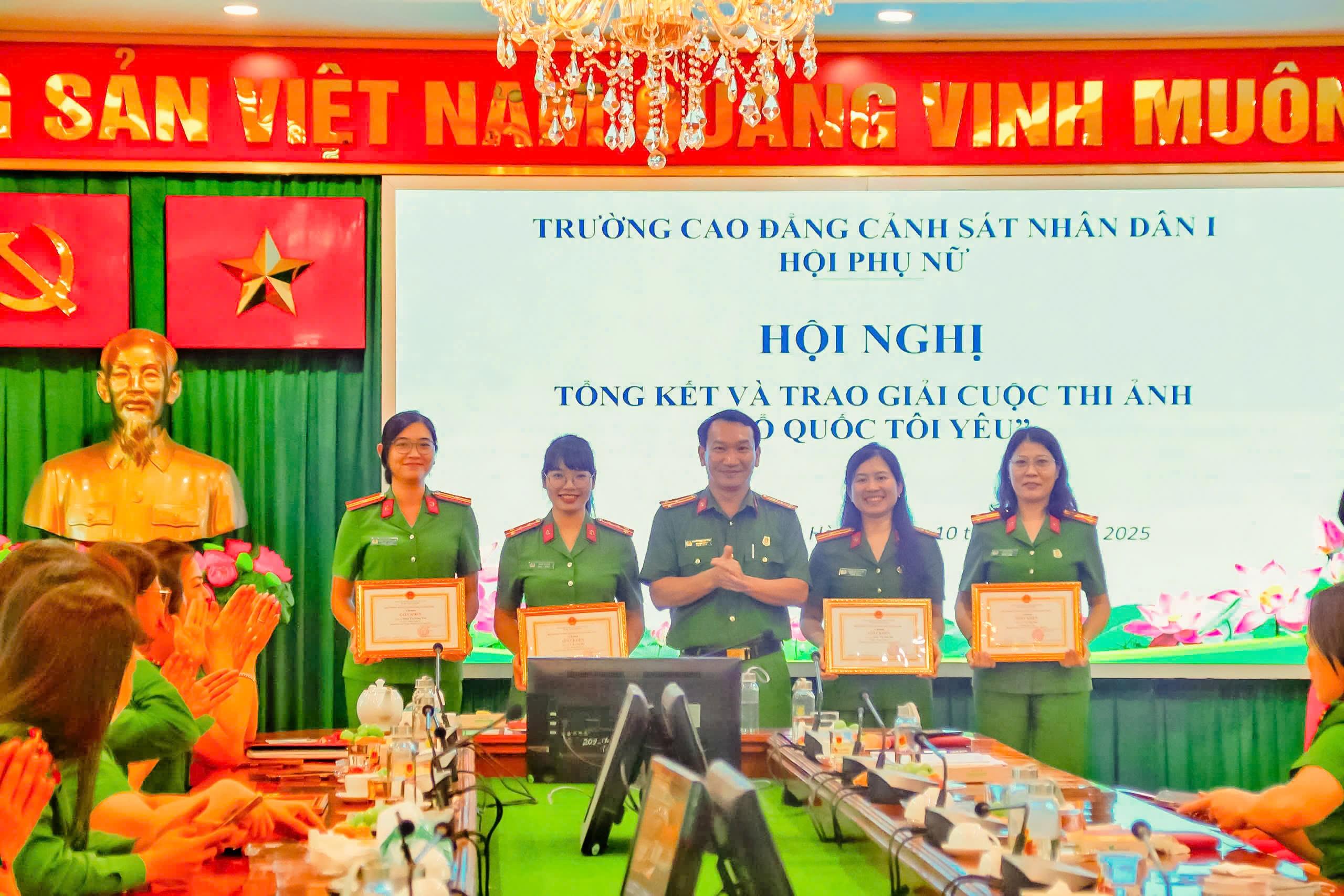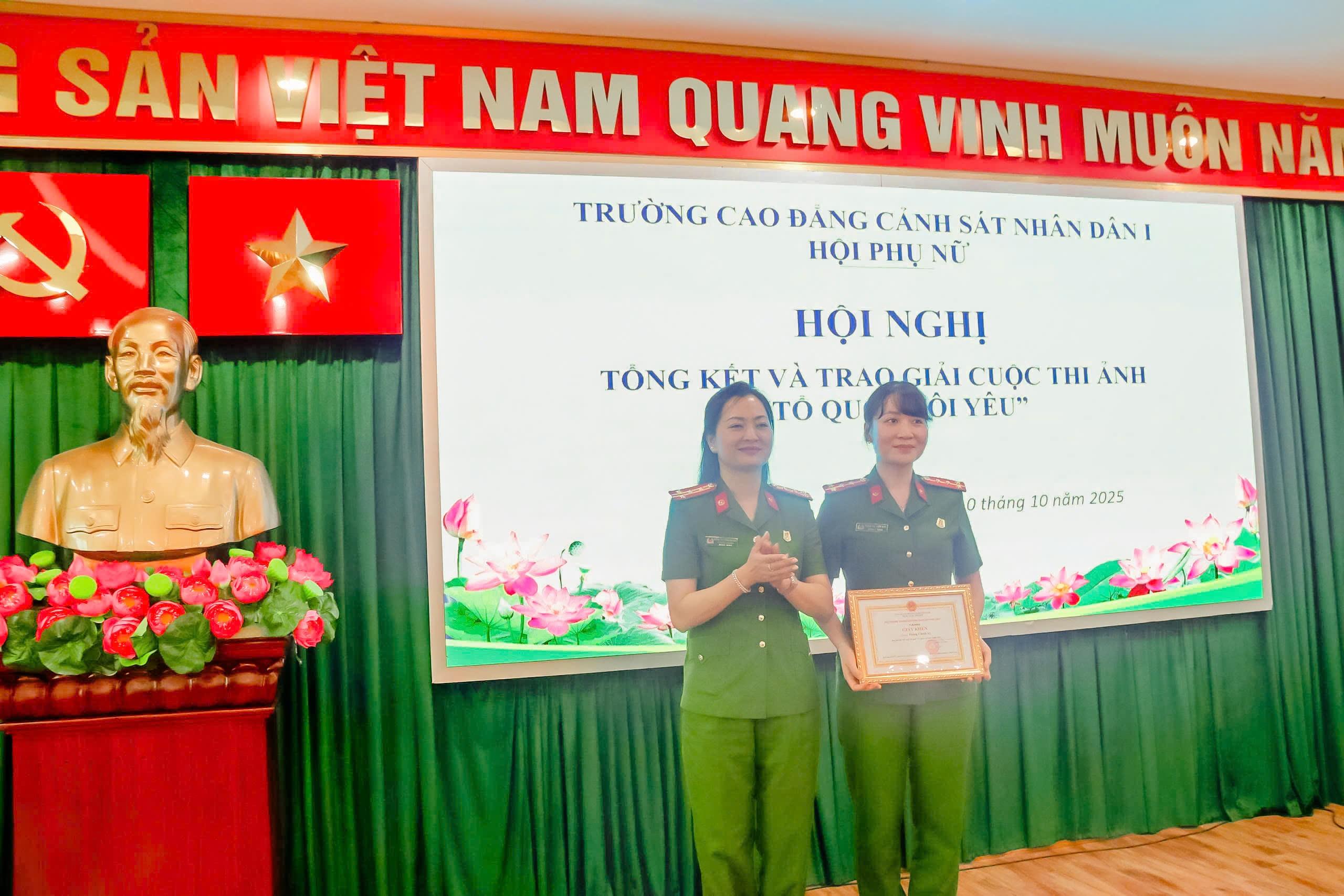 Tại Hội nghị, Ban Tổ chức đã công bố quyết định khen thưởng đối với 06 cán bộ Hội giỏi nhiệm kỳ 2021-2026 và 01 đồng chí là cộng tác viên tích cực của Hội. Đồng thời tổ chức tổng kết, trao giải cuộc thi ảnh “Tổ quốc tôi yêu” năm 2025 với 01 giải cho tập thể Hội xuất sắc nhất; 02 giải Nhất, 05 giải Nhì, 08 giải Ba, 15 giải Khuyến khích ở cả 2 bảng nữ lãnh đạo và nữ cán bộ hội viên. Cuộc thi đã thu hút sự tham gia tích cực của hội viên ở các cấp Hội, góp phần lan tỏa tình yêu quê hương đất nước, niềm tự hào về người chiến sĩ Công an nhân dân trong thời kỳ mới, đem lại khí thế thi đua sôi nổi trước thềm Đại hội đại biểu Phụ nữ nhà trường nhiệm kỳ 2025-2030.
