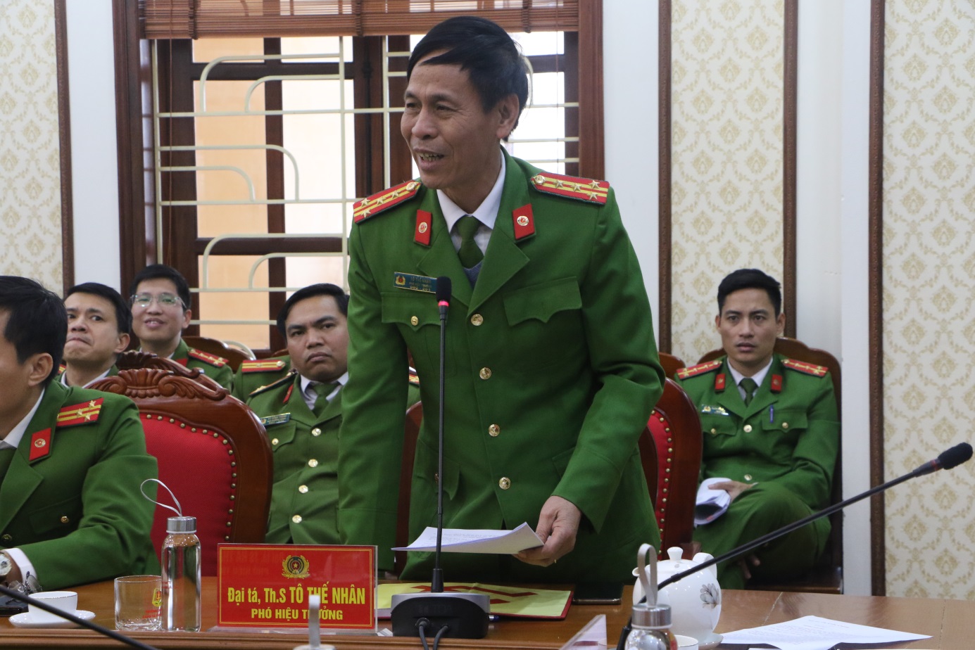 Phát biểu tại Hội nghị, đồng chí Thượng tá, TS. Phùng Văn Dũng – Phó Trưởng phòng 2, Cục Tổ chức cán bộ, Bộ Công an trao đổi, hướng dẫn những nội dung còn vướng mắc, cần làm rõ tại Quyết định. Đồng chí nhấn mạnh: Việc thực hiện Quyết định này giúp tổ chức, sắp xếp bộ máy đồng nhất tại các Trường CAND, hướng đến một hệ thống nhà trường tinh gọn, hoạt động hiệu lực hiệu quả, đáp ứng yêu cầu đào tạo nguồn nhân lực có chất lượng cao cho lực lượng CAND trong tình hình mới.