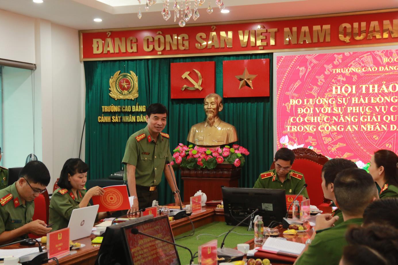 Phát biểu đề dẫn Hội thảo, đồng chí TS, Thượng tá Nguyễn Thanh Sơn, Trưởng Phòng Bảo đảm chất lượng đào tạo khẳng định: Tầm quan trọng của việc đo lường sự hài lòng của người dân, tổ chức đối với sự phục vụ của các cơ quan, đơn vị có chức năng giải quyết thủ tục hành chính trong Công an nhân dân. Hội thảo là diễn đàn khoa học nhằm nâng cao nhận thức, thống nhất một số nội dung lý luận về đo lường sự hài lòng của người dân, tổ chức đối với sự phục vụ của các cơ quan, đơn vị có chức năng giải quyết thủ tục hành chính trong CAND. Theo báo cáo khảo sát, trong những năm qua, chỉ số hài lòng về sự phục vụ hành chính của Công an các đơn vị, địa phương đều đạt kết quả cao.