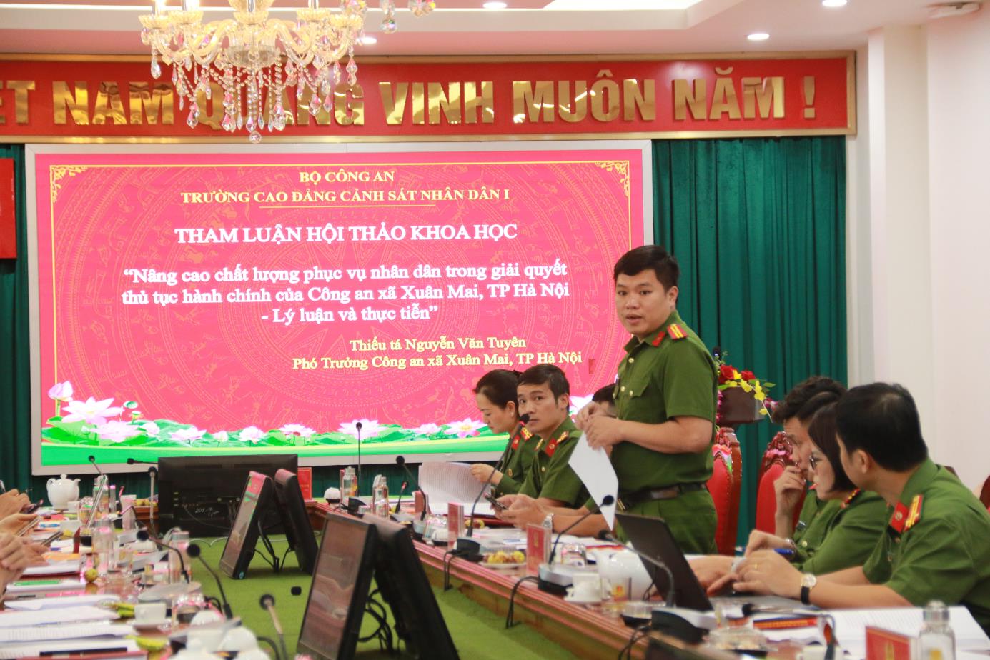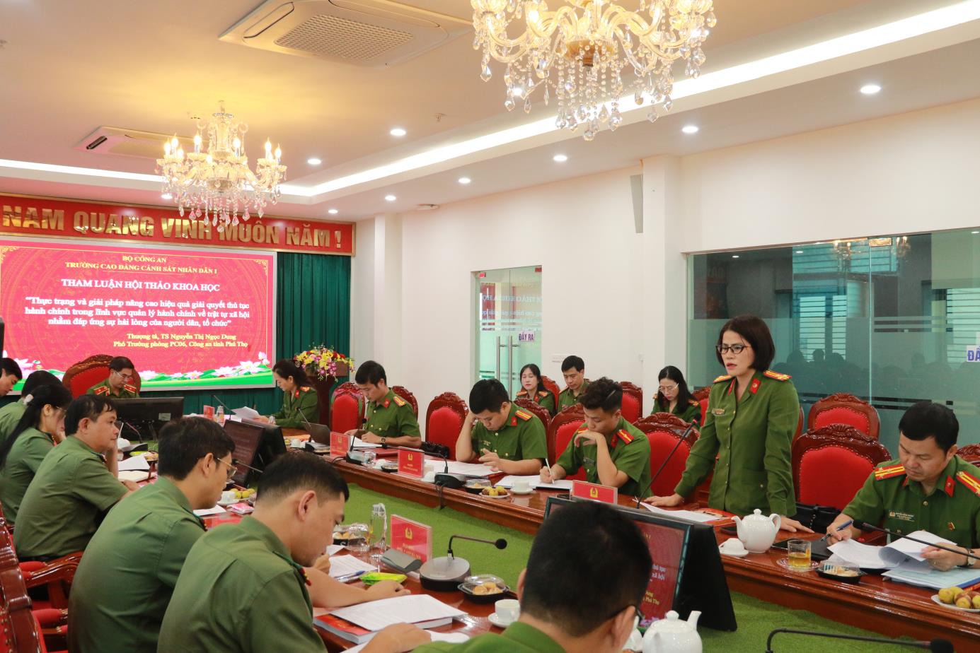 Phần tham luận dưới sự điều hành của đồng chí TS, Đại tá Đồng Thị Hồng Nhung, Phó Hiệu trưởng đã làm rõ chủ đề, bám sát mục đích Hội thảo đề ra. Hằng năm, thông qua kết quả đo lường, Bộ Công an nắm bắt tâm tư, nguyện vọng của nhân dân, qua đó thường xuyên chỉ đạo Công an các đơn vị, địa phương có những giải pháp phù hợp nâng cao chất lượng giải quyết thủ tục hành chính, tăng cường hiệu quả công tác quản lý nhà nước về an ninh, trật tự.