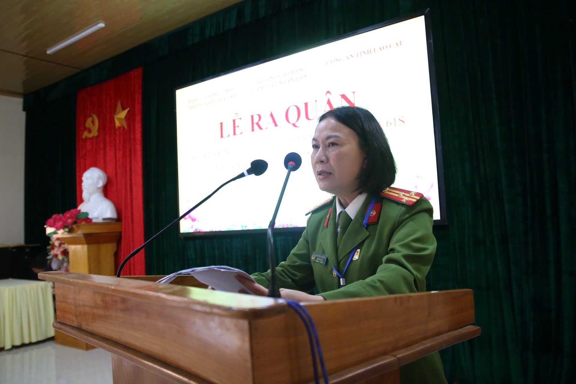 Tại buổi Lễ, đồng chí TS, Đại tá Đồng Thị Hồng Nhung, Phó Hiệu trưởng cảm ơn sự quan tâm, phối hợp, giúp đỡ của Công an tỉnh Lào Cai; của Đảng ủy, chính quyền địa phương và nhân dân xã Nghĩa Tâm giúp thầy và trò nhà trường hoàn thành tốt nhiệm vụ được giao. Đồng thời yêu cầu cán bộ, giáo viên, học viên trong quá trình thực tế tại địa phương phải luôn chấp hành nghiêm chỉnh các quy định của pháp luật, kỉ luật, quy định của Ngành, Nhà trường và của địa phương; tuân thủ nghiêm ngặt các quy định về chế độ quản lý học viên tại địa bàn; tôn trọng phong tục, tập quán của nhân dân địa phương; luôn giữ mối quan hệ đoàn kết, gắn bó với nhân dân, phát huy tinh thần đoàn kết, xung kích, sáng tạo của tuổi trẻ đoàn viên thanh niên để hoàn thành tốt nhiệm vụ trong đợt thực tế.