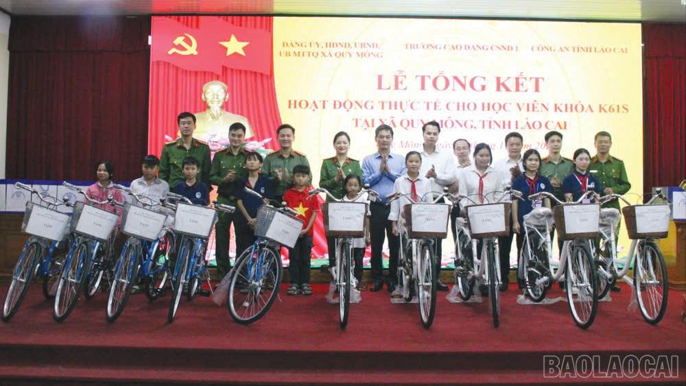 Phối hợp Công an tỉnh Lào Cai, chính quyền và nhân dân trong xã tổ chức chương trình giao lưu văn nghệ và đã thu hút đông đảo bà con nhân dân tham gia; tổ chức giao lưu thể thao giữa cán bộ, học viên nhà trường với cán bộ, nhân dân trên địa bàn xã Quy Mông; tổ chức chương trình giao lưu “Tập làm chiến sĩ Công an” cho các con tại điểm trường mầm non Kiên Thành; phối hợp cùng Công an xã trong tổ chức tuần tra, kiểm soát an ninh, trật tự trên địa bàn; tham gia giúp đỡ chính quyền, Công an xã trong thực hiện một số nội dung về chuyển đổi số…v.v.