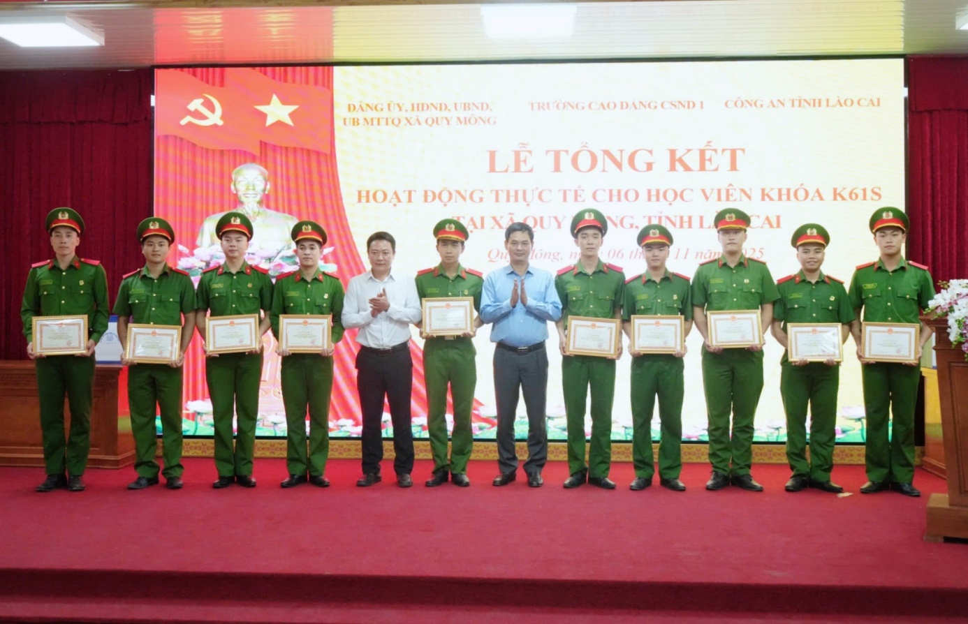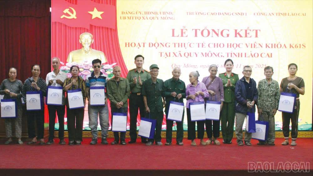 Thay mặt Ban Giám hiệu nhà trường, đồng chí Phó Hiệu trưởng biểu dương tinh thần tận tụy, nhiệt huyết và cố gắng, nỗ lực, sáng tạo của các đồng chí trong Ban Chỉ đạo, cán bộ, giáo viên, học viên nhà trường, đặc biệt là 02 tập thể và cá nhân các học viên có thành tích xuất sắc được lãnh đạo các cấp tặng giấy khen. Đồng thời cảm ơn sự quan tâm, tạo điều kiện của Công an tỉnh Lào Cai; cấp ủy, chính quyền xã Quy Mông; chi ủy, lãnh đạo các thôn và bà con nhân dân đã thương yêu, quý mến, đùm bọc, nhường cơm sẻ áo cho thầy và trò nhà trường trong suốt những ngày qua. Đồng chí Phó Hiệu trưởng cũng nhấn mạnh những tình cảm quý báu của nhân dân giành cho cán bộ, giáo viên, học viên nhà trường chính là cầu nối quan trọng nhất góp phần củng cố và thắt chặt hơn nữa tình cảm, tình đoàn kết giữa Nhà trường với địa phương nói riêng, giữa lực lượng CAND với nhân dân đất nước ta nói chung.