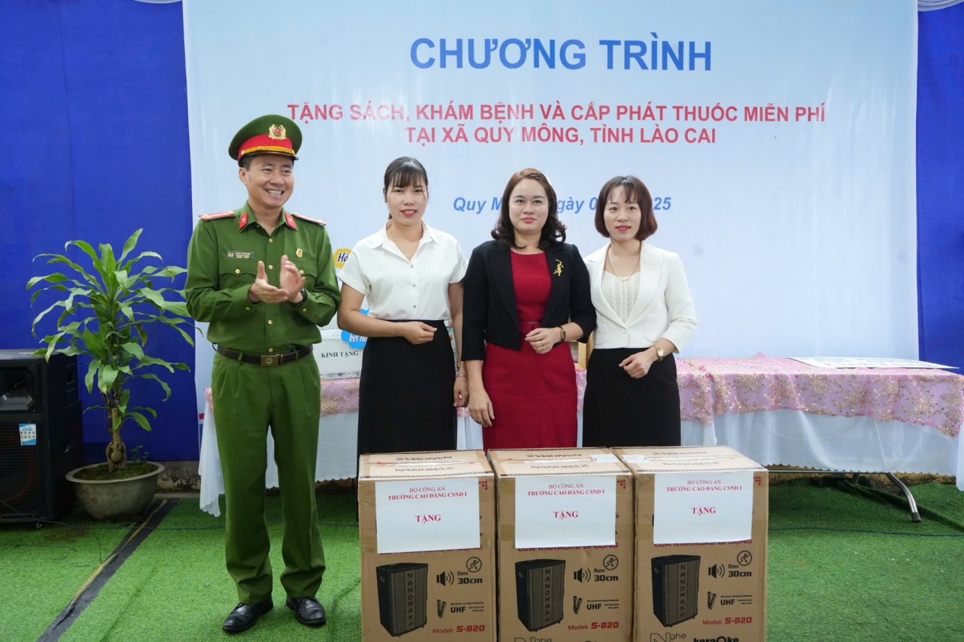 Nhà trường tặng máy tính cho Đảng ủy, UBND và công an xã Quy Mông phục vụ chuyển đổi số.