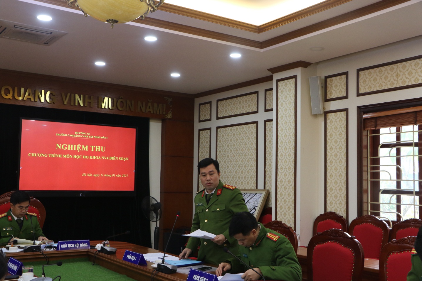 Thực hiện các quy định của Bộ Công an về xây dựng chương trình giáo dục, biên soạn giáo trình, tài liệu dạy học trong Công an nhân dân, đồng thời nhằm đảm bảo phục vụ kịp thời công tác giáo dục đào tạo của Nhà trường trong giai đoạn mới, ngày 11/01/2021 Trường Cao đẳng CSND I tổ chức nghiệm thu Chương trình môn học của Khoa Cảnh sát phòng chống tội phạm về ma túy.