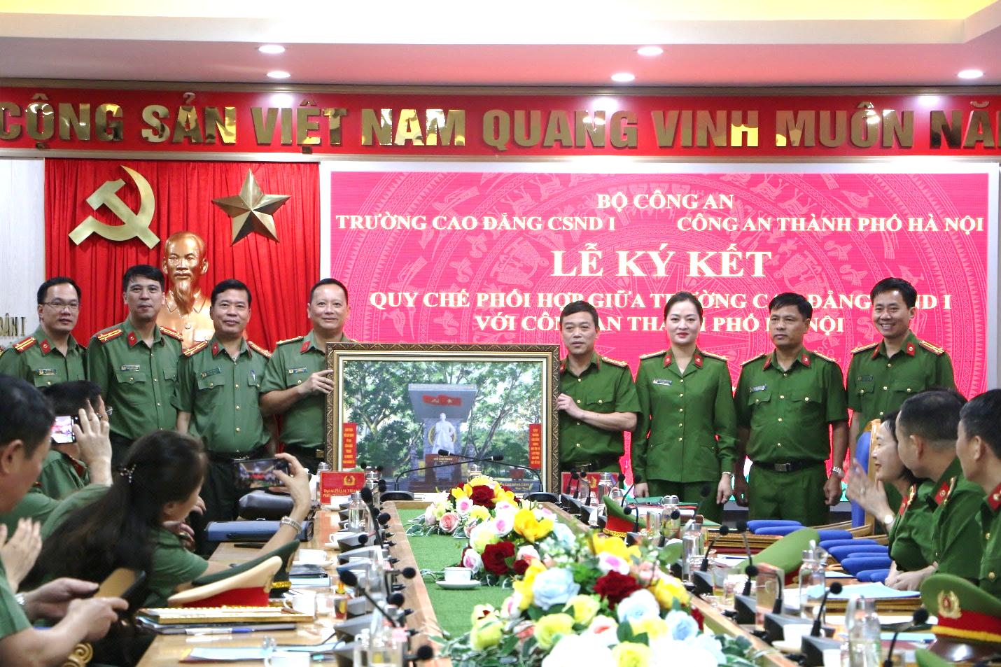 Hội nghị thông qua Dự thảo và ký kết Quy chế phối hợp mới giữa Trường Cao đẳng CSND I và Công an thành phố Hà Nội.