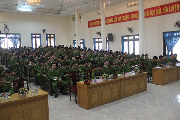 Tại Hội nghị, đồng chí Hiệu trưởng đã trình bày, quán triệt nội dung Hội nghị Công an toàn quốc lần thứ 70 diễn ra trong hai ngày 30 và 31/12/2014 vừa qua. Theo đó, Hội nghị Công an toàn quốc lần thứ 70 được tổ chức nhằm tổng kết tình hình, kết quả công tác công an và phong trào thi đua “Vì an ninh Tổ quốc” năm 2014; tổng kết 30 năm đổi mới công tác công an (1986-2016) và một số chuyên đề quan trọng khác; triển khai nhiệm vụ công tác bảo đảm an ninh, trật tự và phát động phong trào thi đua “Vì an ninh Tổ quốc” năm 2015. Đây là Hội nghị rất quan trọng, đánh dấu chặng đường vẻ vang 70 năm xây dựng, chiến đấu và trưởng thành của Lực lượng CAND; tiếp tục đổi mới, kế thừa, phát huy những bài học kinh nghiệm của 69 kỳ tổ chức Hội nghị Công an toàn quốc cũng như thành tựu, bài học kinh nghiệm qua 30 năm đổi mới công tác công an. Cũng tại Hội nghị, đồng chí Hiệu trưởng đã đề cập đến 5 vấn đề trọng tâm của công tác công an đã được đồng chí Bộ trưởng Trần Đại Quang tổng kết tại Hội nghị Công an toàn quốc lần thứ 70, trong đó đồng chí Hiệu trưởng đặc biệt nhấn mạnh những nội dung có liên quan đến công tác giáo dục đào tạo của Nhà trường. Đồng chí Hiệu trưởng cũng mong muốn các đơn vị chức năng tham mưu, tổ chức nhiều hình thức mới để tăng cường công tác giáo dục truyền thống, giáo dục chính trị tư tưởng, giáo dục đạo đức nghề nghiệp cho học viên Nhà trường.