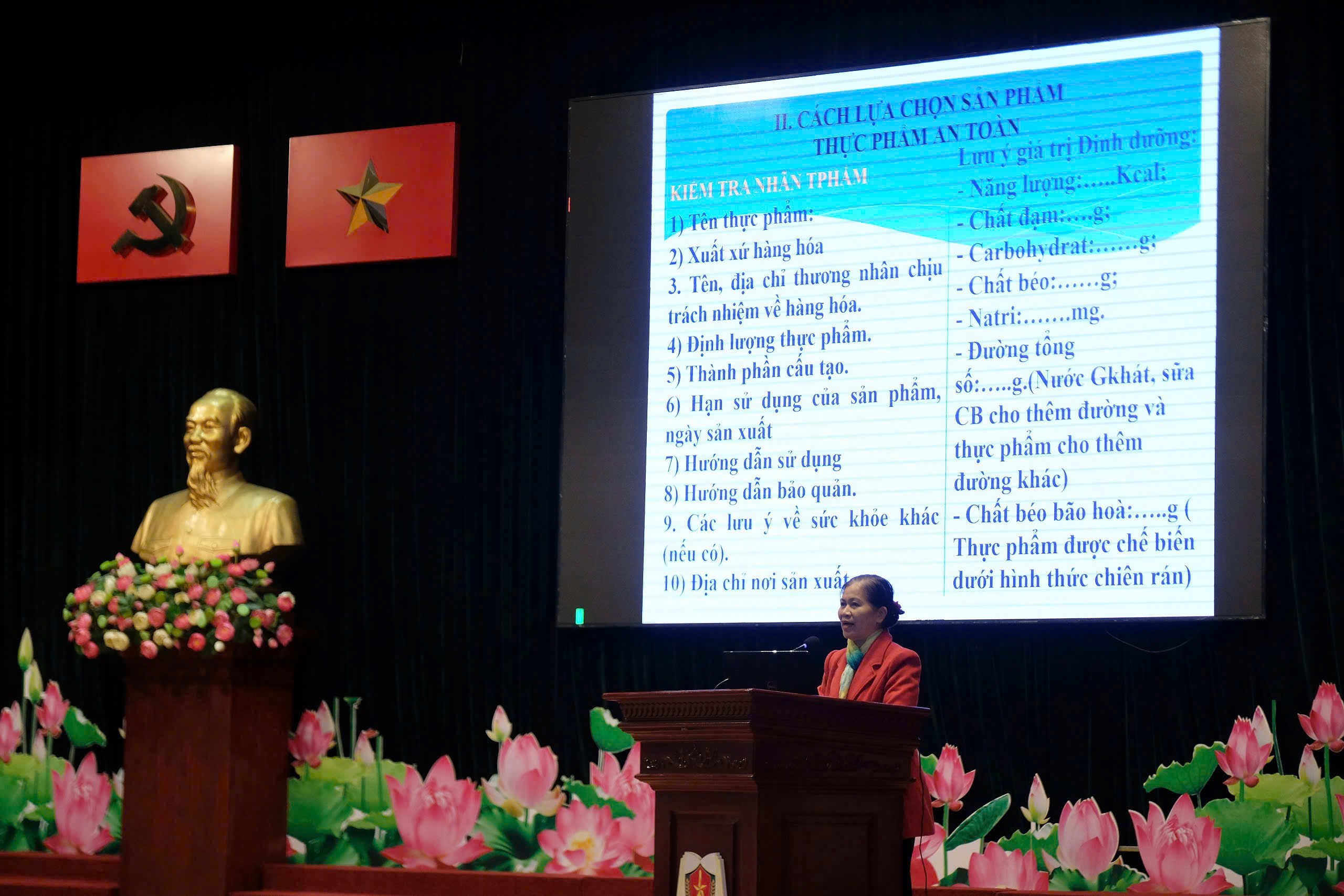 Tại lớp tập huấn, giảng viên Hoàng Thị Minh Thu đã truyền đạt các nội dung của An toàn thực phẩm như:phổ biến các văn bản quy phạm pháp luật về an toàn thực phẩm; thực trạng ngộ độc thực phẩm, các mối nguy cơ gây ngộ độc thực phẩm; cách lựa chọn cơ sở cung cấp thực phẩm, sản phẩm thực phẩm an toàn; cách bảo quản thực phẩm an toàn; cách chế biến, sử dụng thực phẩm.