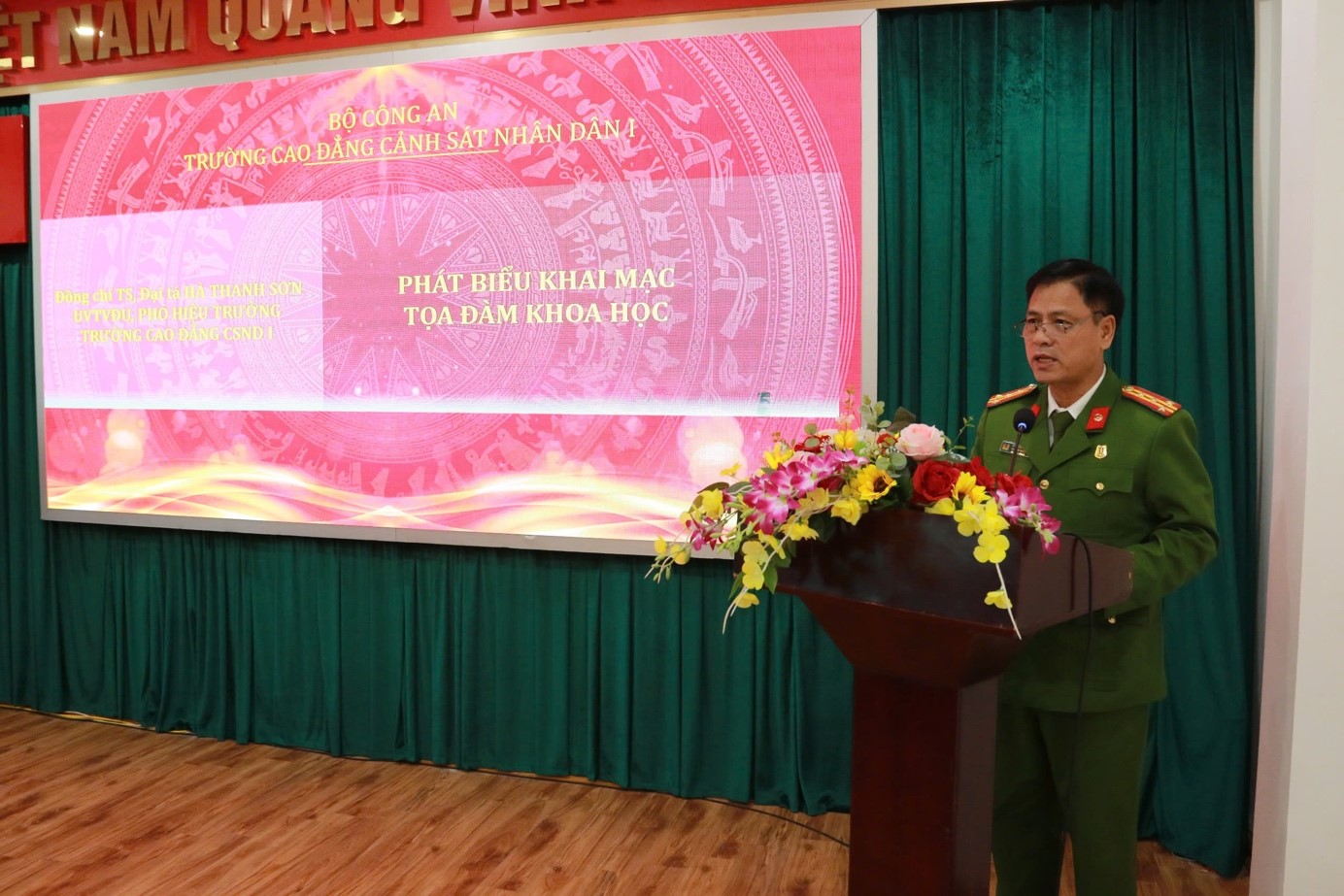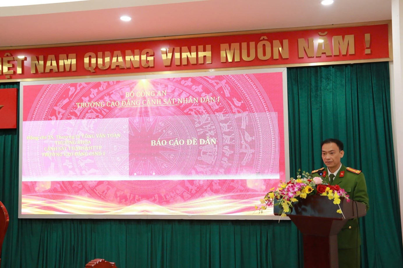 Đồng chí TS, Thượng tá Tống Văn Toàn, Trưởng khoa Cảnh sát thi hành án hình sự và hỗ trợ tư pháp, báo cáo đề dẫn Tọa đàm