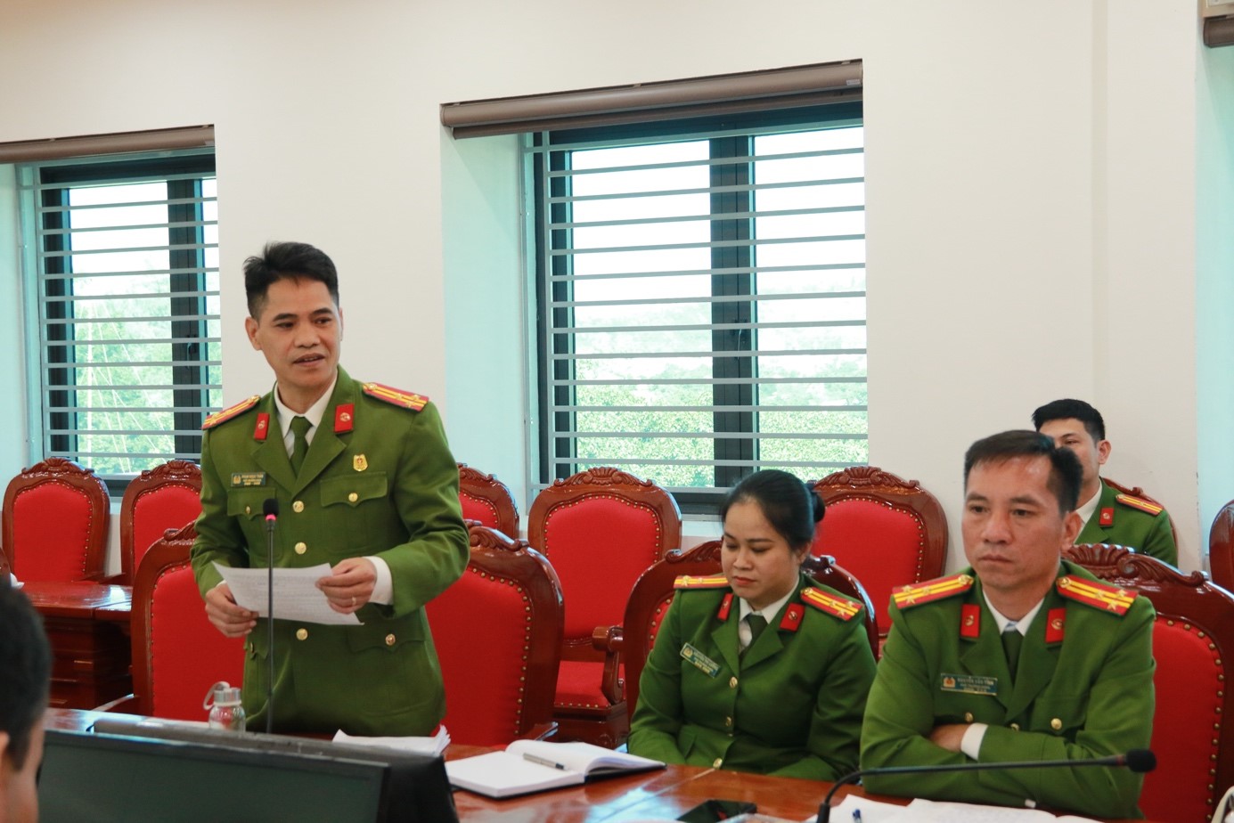 Đồng chí Thượng tá Nguyễn Văn Tĩnh, Phó Trưởng khoa Cảnh sát thi hành án hình sự và hỗ trợ tư pháp phát biểu tham luận