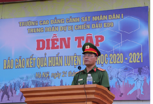 Ngày 21/6/2021, tại Trường Cao đẳng CSND I, Trung đoàn dự bị chiến đấu Trường Cao đẳng CSND I tổ chức diễn tập báo cáo kết quả huấn luyện năm học 2020 - 2021. Buổi diễn tập được tổ chức có ý nghĩa quan trọng nhằm nghiêm túc tổng kết, đánh giá những kết quả đã đạt được, chỉ ra những mặt còn hạn chế; từ đó đưa ra các phương hướng nâng cao chất lượng, hiệu quả công tác huấn luyện, trình độ nghiệp vụ, chuyên môn kỹ thuật, chiến thuật; hoàn thiện khả năng tổ chức, chỉ huy, hiệp đồng tác chiến, công tác ứng trực, sẵn sàng nhận nhiệm vụ khi có yêu cầu, góp phần đảm bảo an ninh chính trị, trật tự an toàn xã hội, phục vụ các sự kiện chính trị, văn hóa, thể thao của đất nước trong thời gian tới.