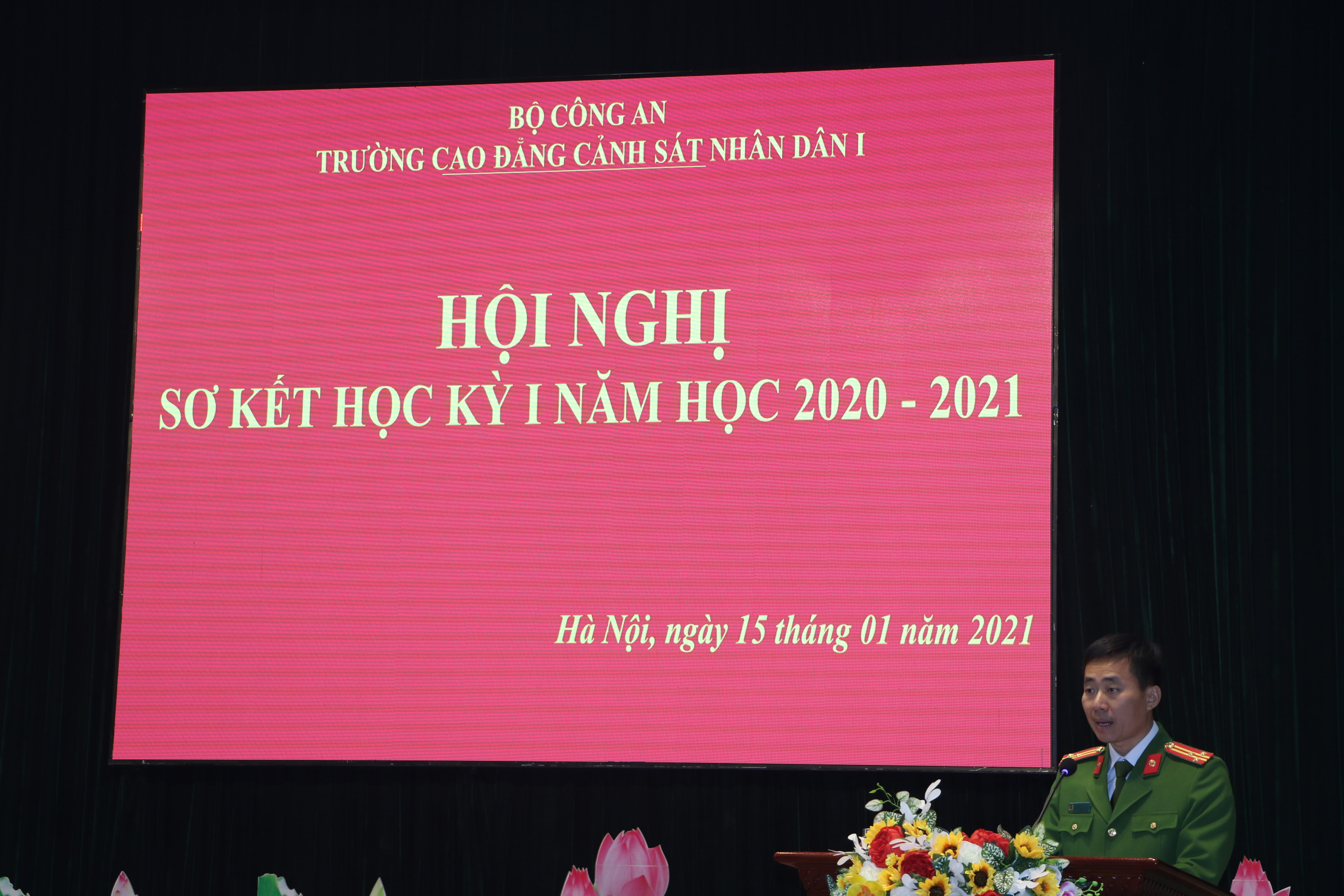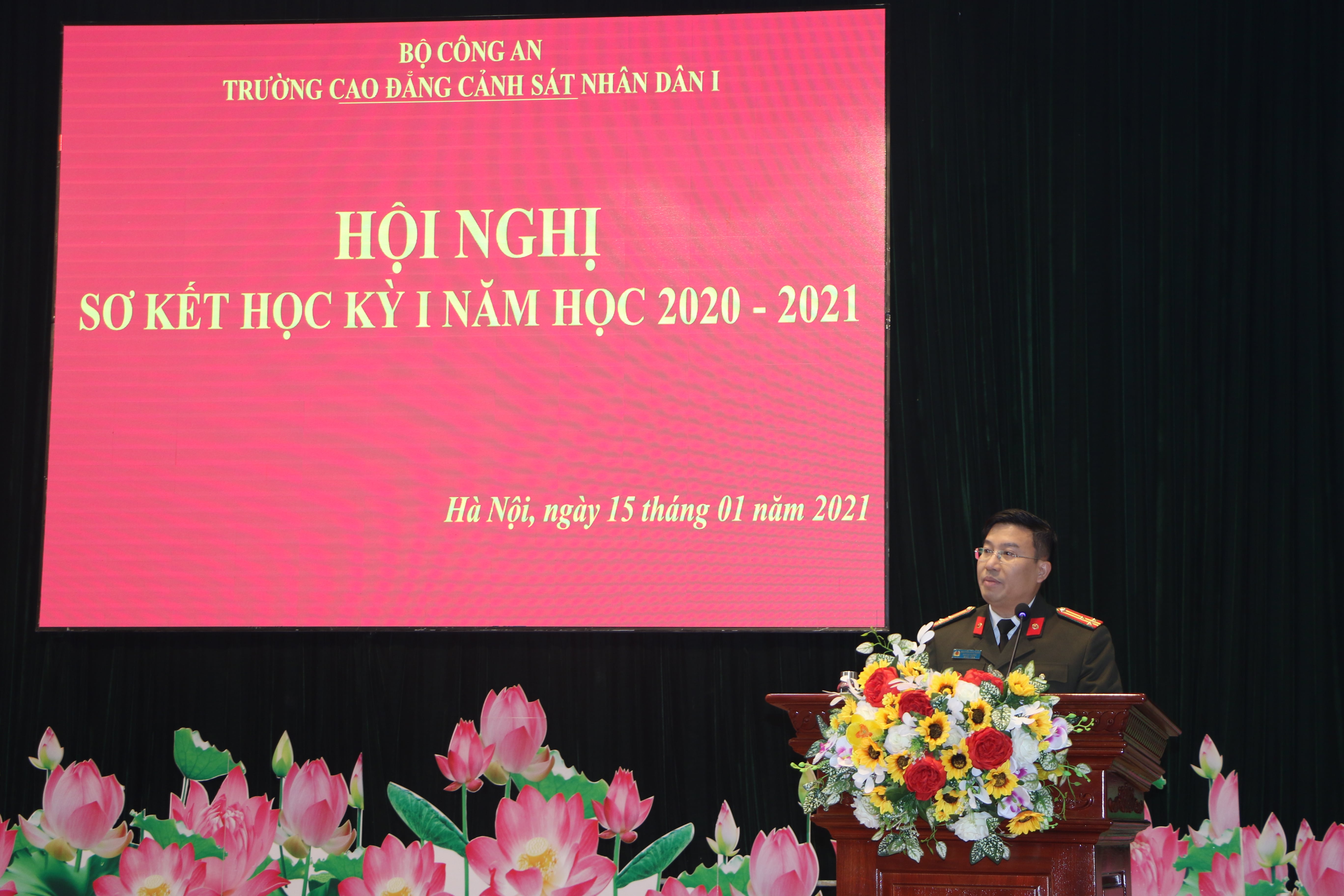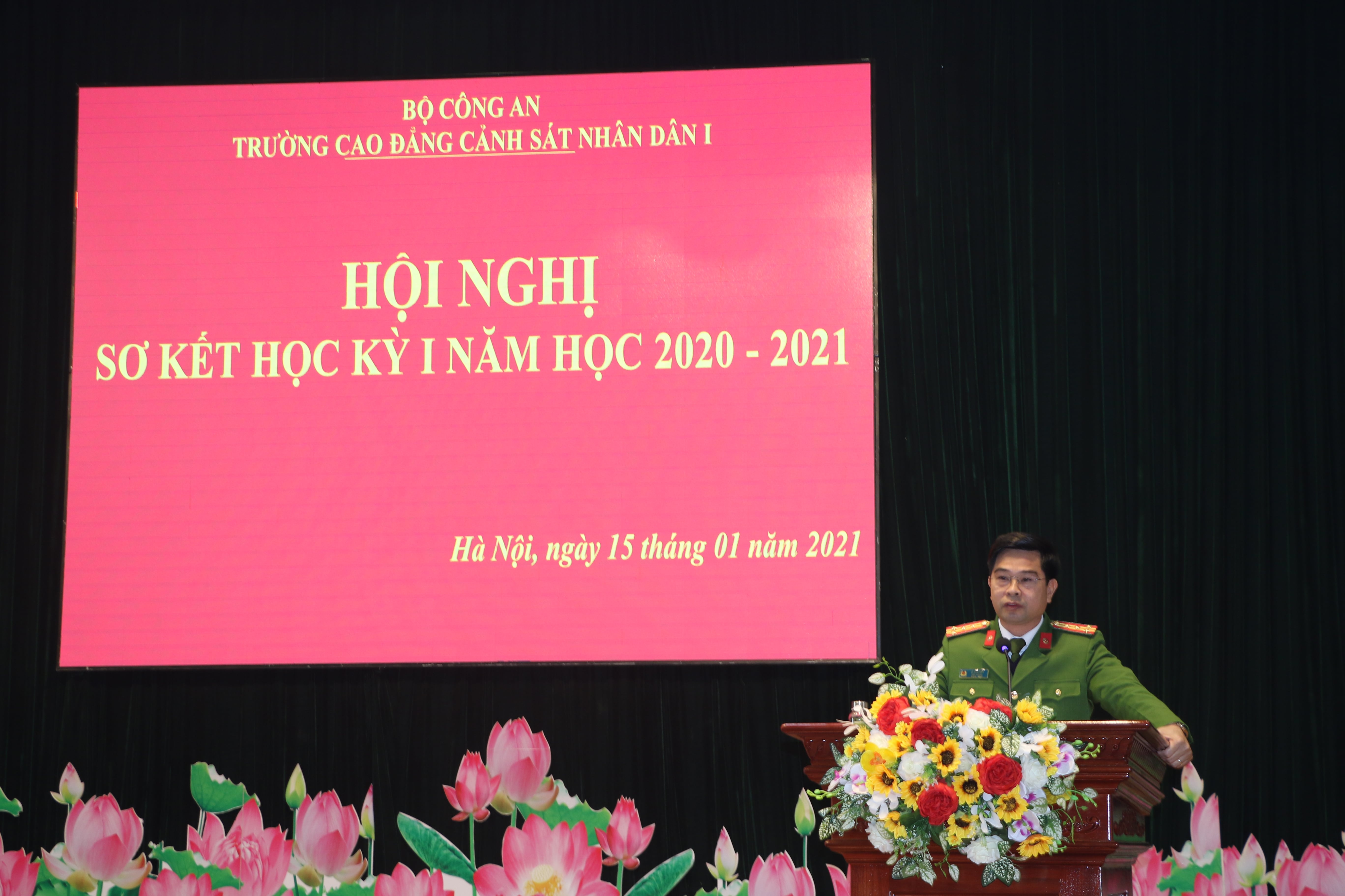Trong phát biểu của mình, đồng chí khẳng định, học kỳ I vừa qua Trường Cao đẳng Cảnh sát nhân dân I đã nỗ lực cố gắng, khắc phục mọi khó khăn, đoàn kết, phấn đấu hoàn thành và hoàn thành vượt bậc các kế hoạch công tác đề ra. Trong đó phải kể đến các hoạt động lớn, có ý nghĩa quan trọng như: khẩn trương ổn định địa điểm sau sáp nhập; tổ chức thành công Đại hội Đảng bộ nhà trường lần thứ I, nhiệm kỳ 2020 - 2025; mời Bộ trưởng và các đơn vị chức năng của Bộ đến thăm và làm việc; khai giảng năm học mới; kỷ niệm 55 năm ngày thành lập nhà trường và đón nhận Huân chương Bảo vệ Tổ quốc hạng Ba do Chủ tịch nước trao tặng.