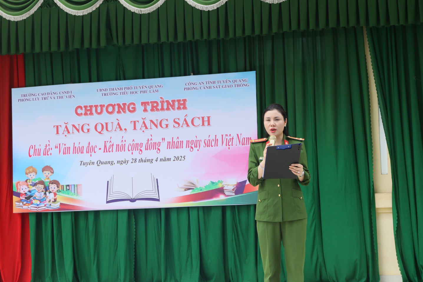Phát biểu tại chương trình, đồng chí Thượng tá Bùi Văn Đặng, Phó Trưởng phòng Cảnh sát giao thông cảm ơn sự phối hợp của Phòng Lưu trữ và Thư viện Trường Cao đẳng CSND I trong các công tác cộng đồng tại địa phương. Thông qua hoạt động này là cơ hội để tăng cường mối quan hệ hợp tác giữa Nhà trường và các đơn vị địa phương nói chung, Công an tỉnh Tuyên Quang nói riêng, từ đó giúp xây dựng hai đơn vị ngày càng phát triển vững mạnh, cùng nhau phát huy tính chủ động, sáng tạo, phối hợp chặt chẽ để hoàn thành tốt các nhiệm vụ được giao.