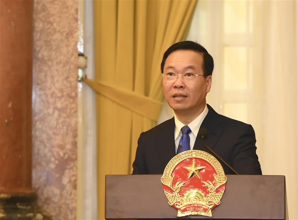 Chủ tịch nước Võ Văn Thưởng phát biểu giao nhiệm vụ đối với Thượng tướng Nguyễn Duy Ngọc tại buổi Lễ.