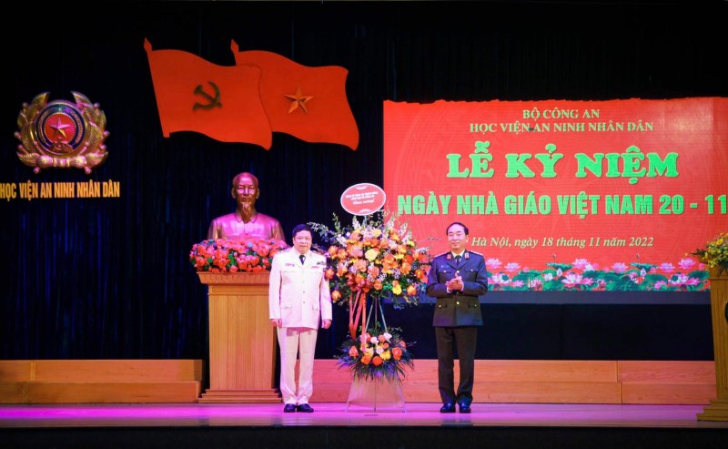 Thứ trưởng Trần Quốc Tỏ tặng hoa chúc mừng Học viện ANND nhân dịp kỷ niệm Ngày nhà giáo Việt Nam 20/11.