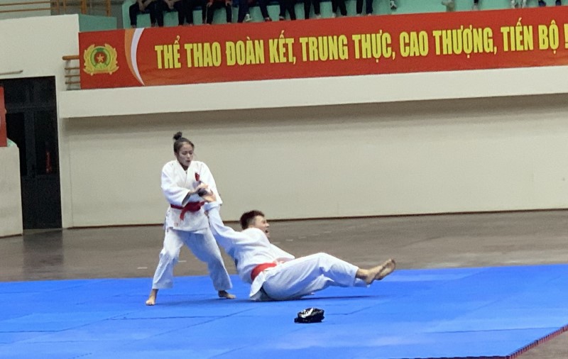 * Một số hình ảnh trình diễn võ thuật đẹp mắt do các VĐV Câu lạc bộ Võ thuật CAND biểu diễn tại Lễ khai mạc: