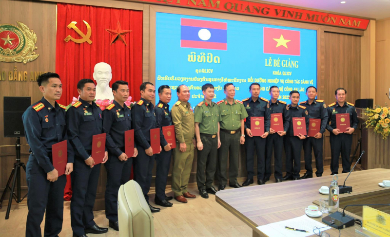 Bế giảng khoá Bồi dưỡng nghiệp vụ Cảnh vệ cho cán bộ Bộ Công an Lào