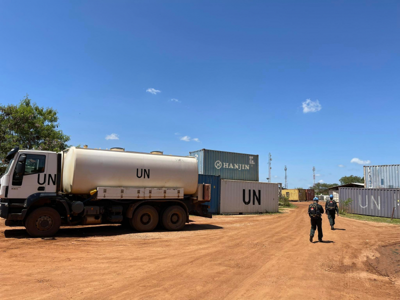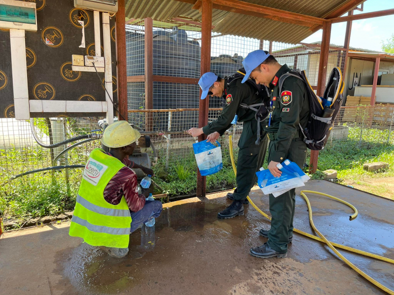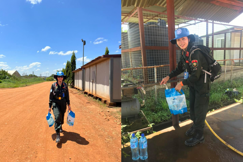 "Thỉnh thỏang trên đường đi lấy nước, tôi được một nhân viên UNMISS cho đi nhờ xe ô tô, qua đó có thêm một người bạn tại đây", Trung tá Lương Thị Trà Vinh cho biết.