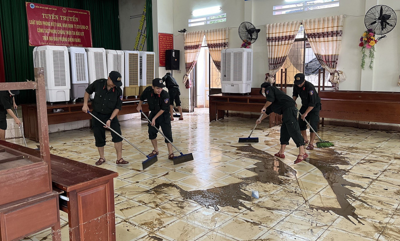 Đại úy Nguyễn Văn Nhật, Bí thư Đoàn cơ sở Trung đoàn CSCĐ Nam Trung Bộ cho biết: “Chúng tôi chia làm 3 tổ, tiếp tục giúp dân dọn dẹp nhà cửa đến ngày mai, sớm ổn định cuộc sống người dân ở đây”.