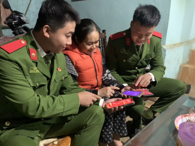 Học viên Trường Cao đẳng CSND I hướng dẫn bà con cài đặt các ứng dụng trên điện thoại thông minh.