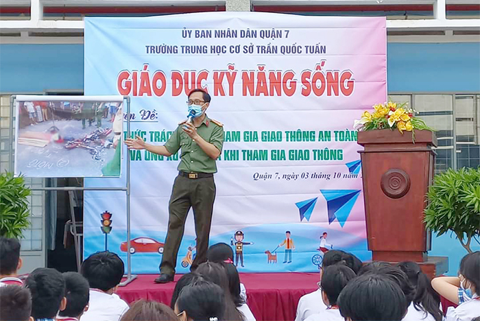 Có thời gian làm công tác chuyên trách tuyên truyền phổ biến pháp luật về ATGT, kỹ năng xử lý an toàn khi tham gia giao thông trên đường 12 năm nay (từ năm 2010), Trung tá Nguyễn Chánh Trung, Đội CSGT-TT Công an TP Thủ Đức, chia sẻ rằng mình rất đam mê với công việc này.