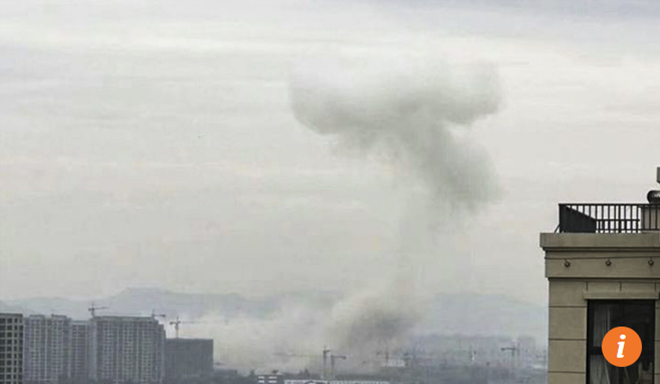 Cột khói cao ngút bốc lên từ hiện trường vụ nổ tại thành phố Ninh Ba.