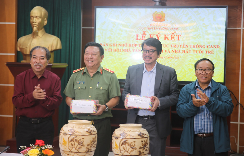 Cùng dự lễ ký kết còn có các đồng chí lãnh đạo Cục Truyền thông CAND, Nhà hát Tuổi trẻ, Hội Nhà văn Việt Nam và đông đảo cán bộ chiến sĩ, văn nghệ sĩ.