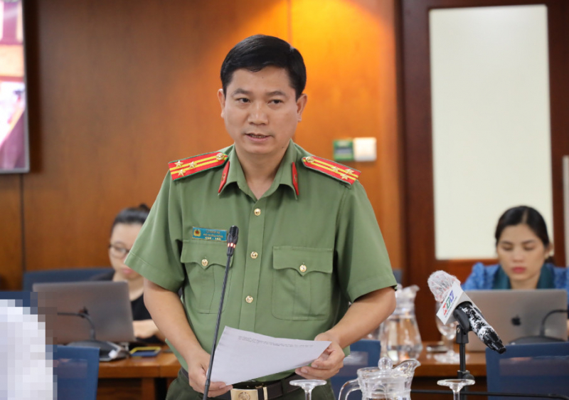 Thượng tá Lê Mạnh Hà, Phó Trưởng phòng tham mưu Công an TP Hồ Chí Minh cung cấp thông tin tại họp báo.