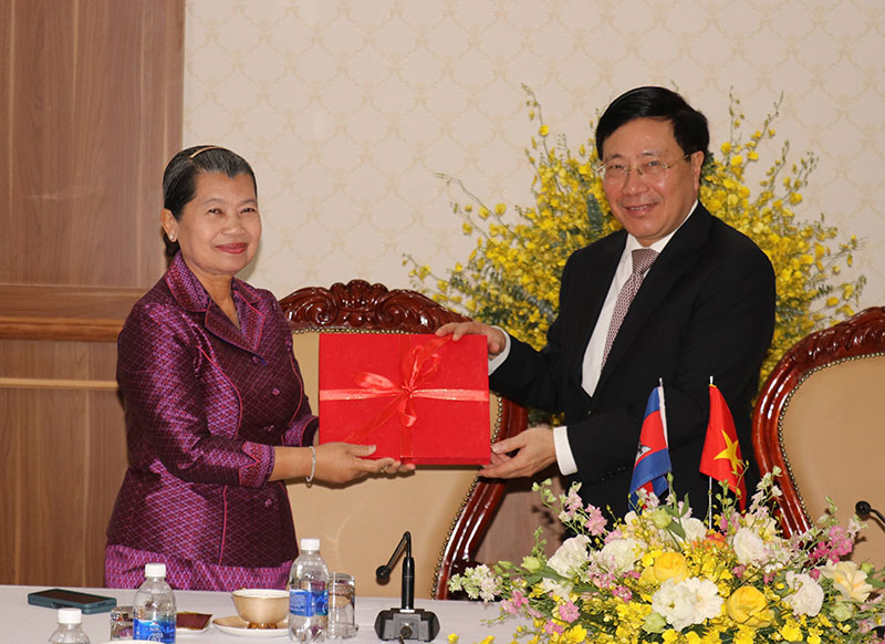 Phó Thủ tướng Thường trực Phạm Bình Minh hoan nghênh và đánh giá cao việc các tổ chức hữu nghị hai nước phối hợp tổ chức Gặp gỡ hữu nghị và hợp tác nhân dân Việt Nam - Campuchia lần thứ V tại Bình Phước và Đắk Nông - hai địa danh có nhiều ý nghĩa, dấu ấn lịch sử trong quan hệ hữu nghị nhân dân hai nước.
