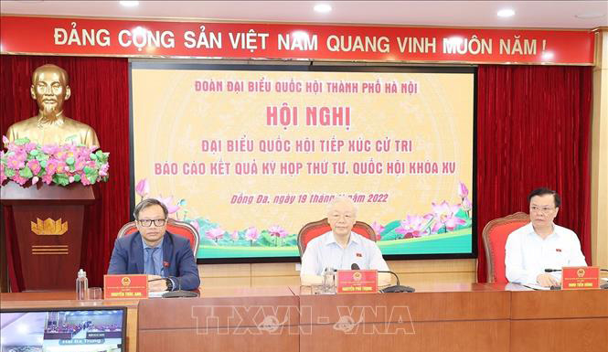 Tổng Bí thư Nguyễn Phú Trọng và các Đại biểu Quốc hội dự hội nghị tiếp xúc cử tri tại quận Đống Đa.