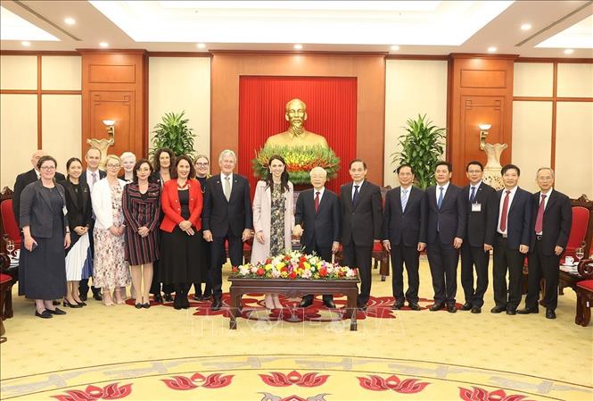 Tổng Bí thư Nguyễn Phú Trọng hoan nghênh Thủ tướng Jacinda Ardern và đoàn tới thăm Việt Nam, đánh giá cao kết quả hội đàm giữa Thủ tướng Jacinda Ardern với Thủ tướng Phạm Minh Chính để tăng cường quan hệ chính trị, hợp tác kinh tế, thúc đẩy giao lưu nhân dân và trên nhiều lĩnh vực khác cũng như việc hai bên ký kết một số thỏa thuận hợp tác.